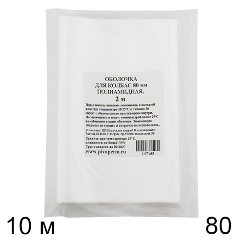 - СпецииГлавная » Магазин » Гастрономия » Колбасы, ветчины » Оболочка для ветчин, полиамидная 80 мм, белая 10 м